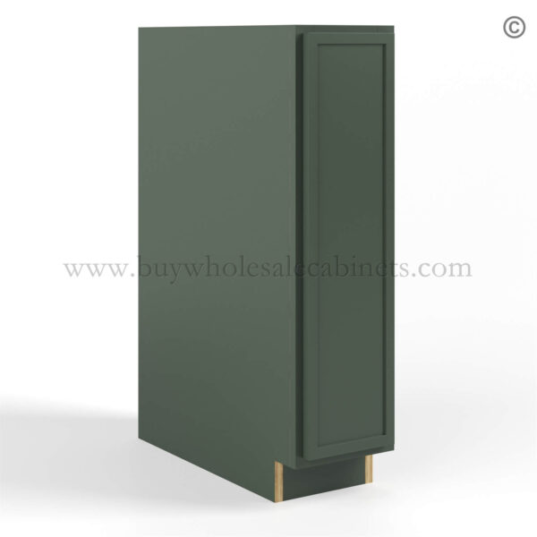 Our RTA Slim Shaker Green cabinets are finished with a high quality 7 layers of paint with a protective UV Coating and the side panels are also finished..