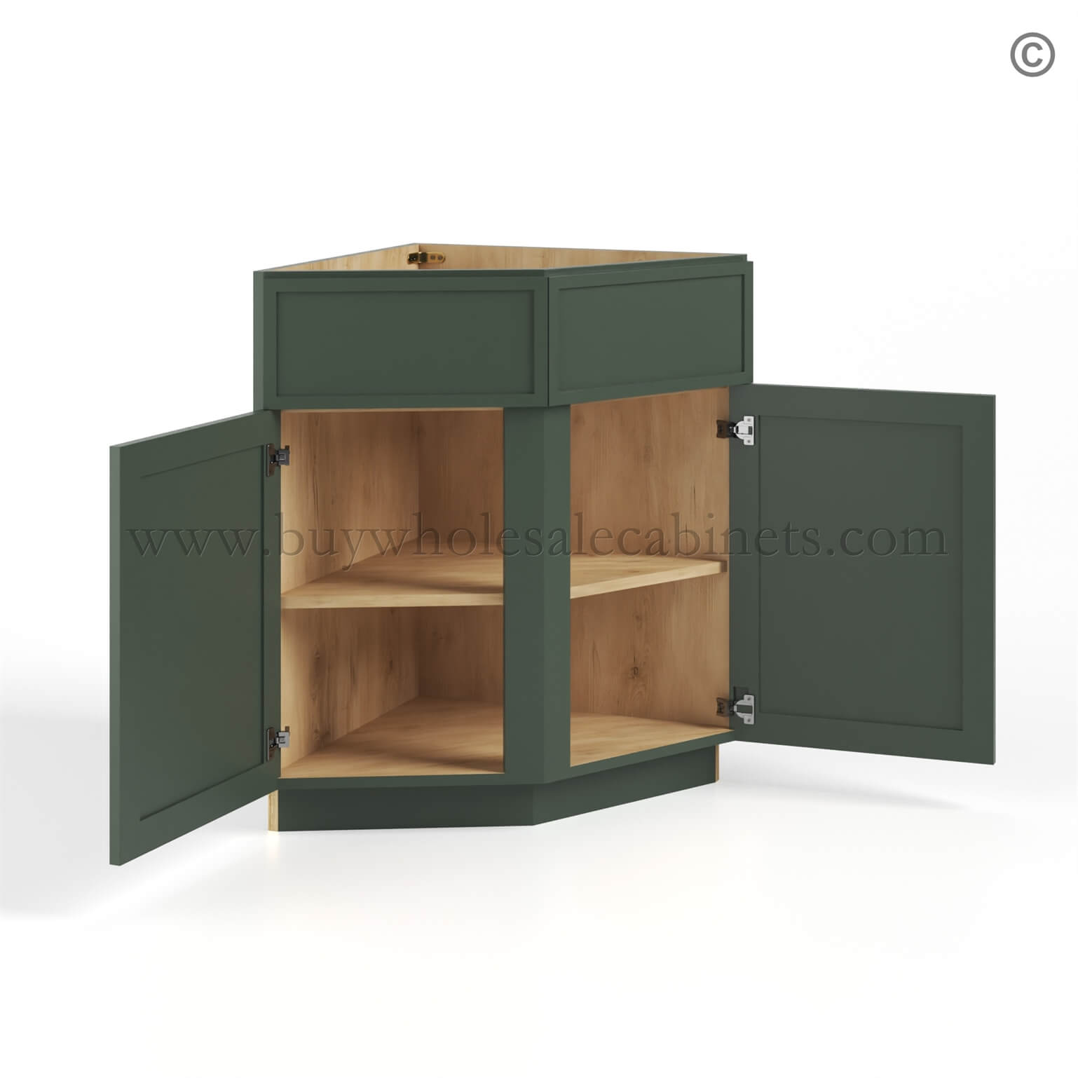 Slim Shaker Green Base End Corner Cabinet