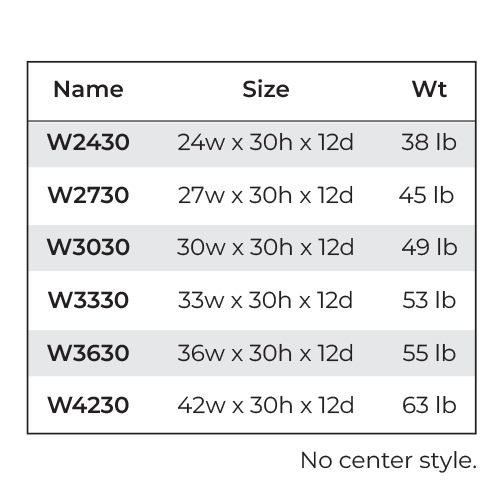 -30%30"W x 12"D x 18"H30"W x 12"D x 21"H33"W x 12"D x 18"H33"W x 12"D x 21"H36"W x 12"D x 18"H36"W x 12"D x 21"H