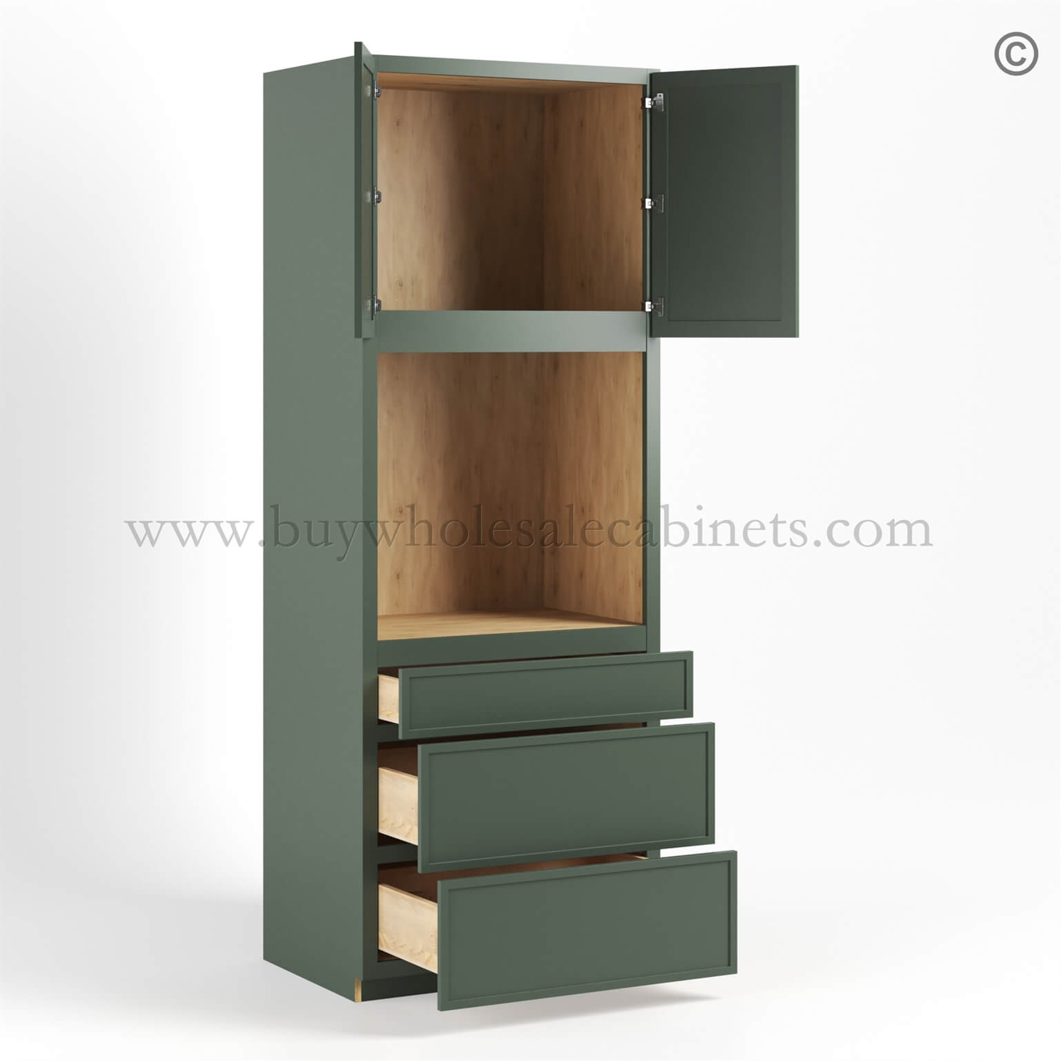 Our RTA Slim Shaker Green cabinets are finished with a high quality 7 layers of paint with a protective UV Coating and the side panels are also finished..