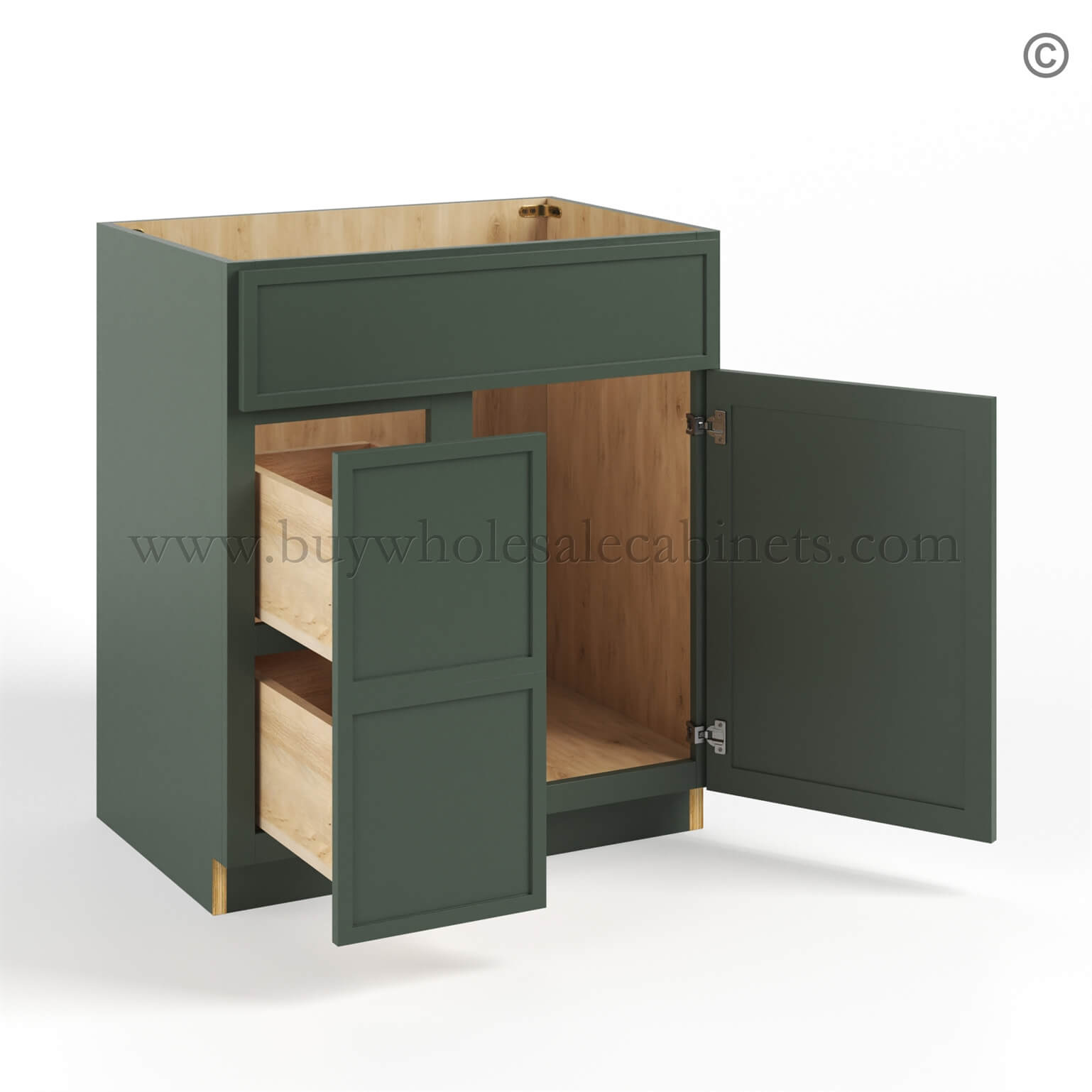 Slim Shaker Green Vanity Drawer Base Cabinet