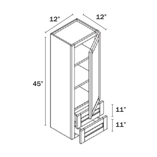 Box Construction: 1/2″ A-Grade Plywood with metal L bracket reinforcements for base cabinets