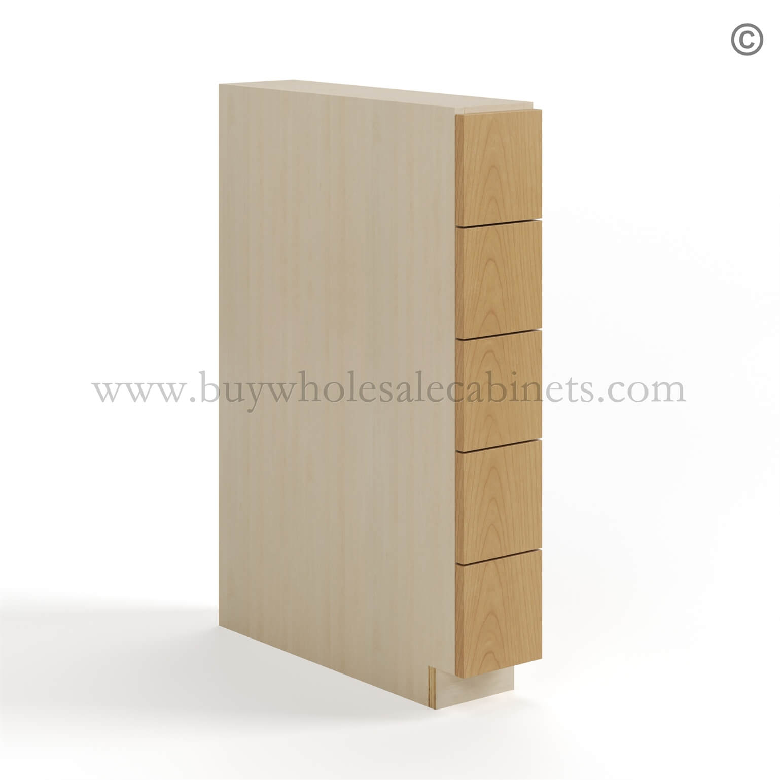 Our Treasure Chest Shaker Base Spice Cabinet with 5 Drawers is 34.5″ in height, 6″ wide, and 24″ deep. This cabinet Treasure Chest will fit perfectly in your kitchen or bathroom.