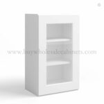 Our White Shaker 36 H Single Door Wall Cabinet with Glass Door is 36″ tall, 12″ deep and available in 2 widths (15″, 18″).