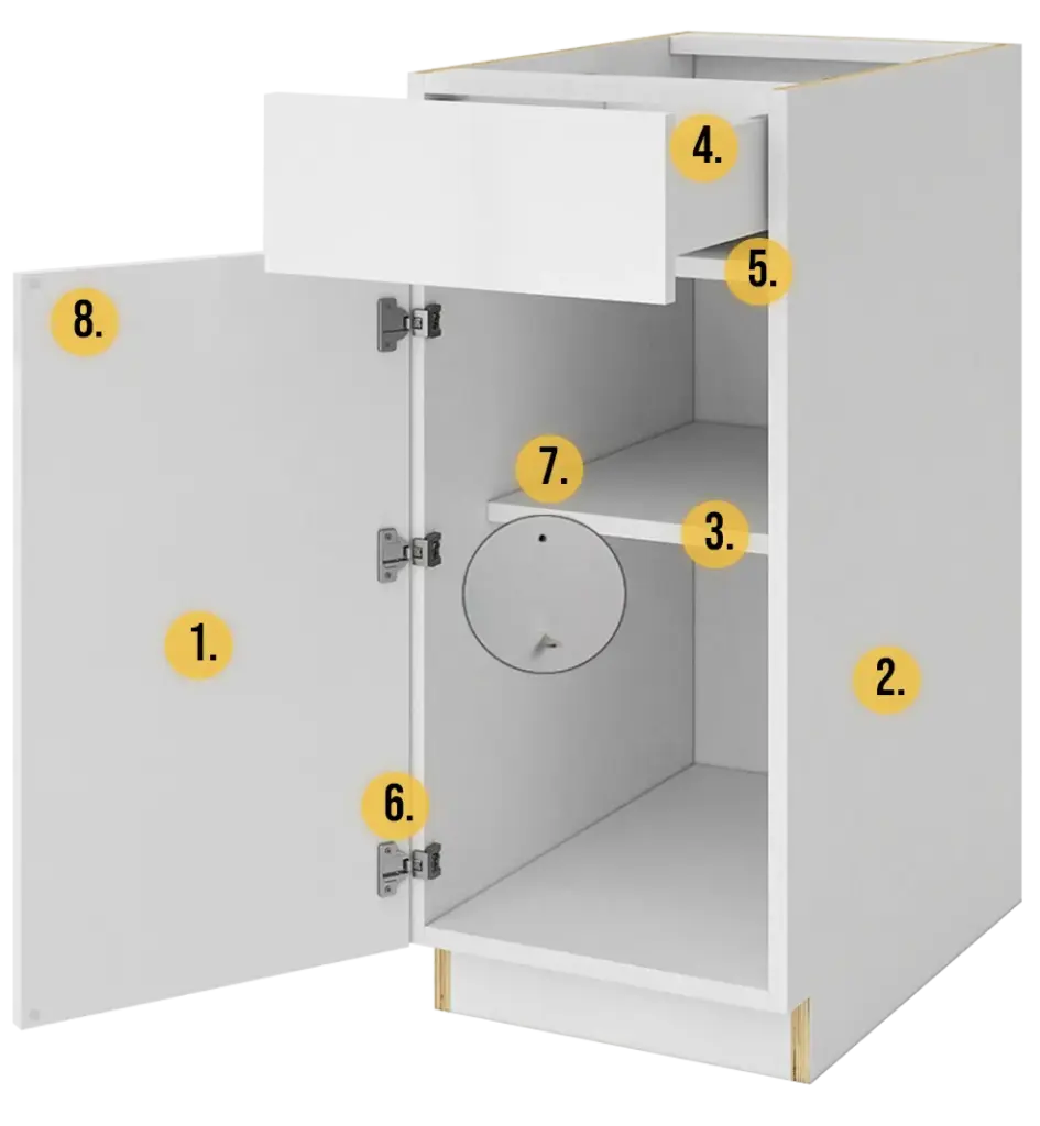 3/4" thick cabinet grade plywood cabinet box covered with white melamine