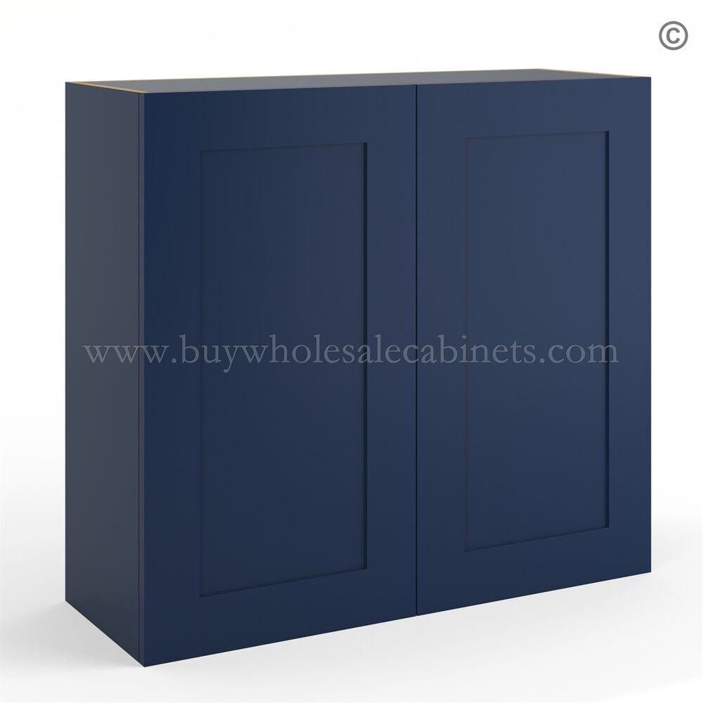 Frameless Oxford Blue 36″ Tall Wall Cabinet – 2 Doors 2 Shelves