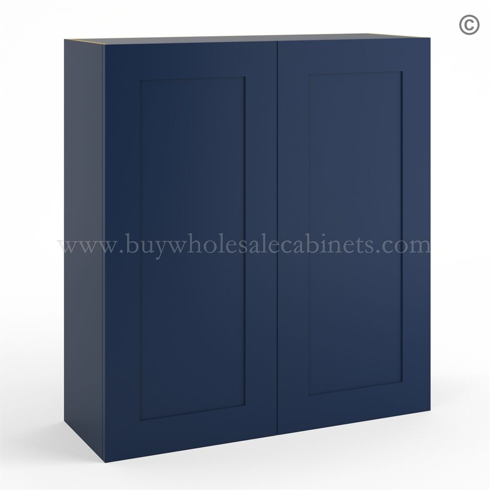 Frameless Oxford Blue 30″ Tall Wall Cabinet – 2 Doors 2 Shelves