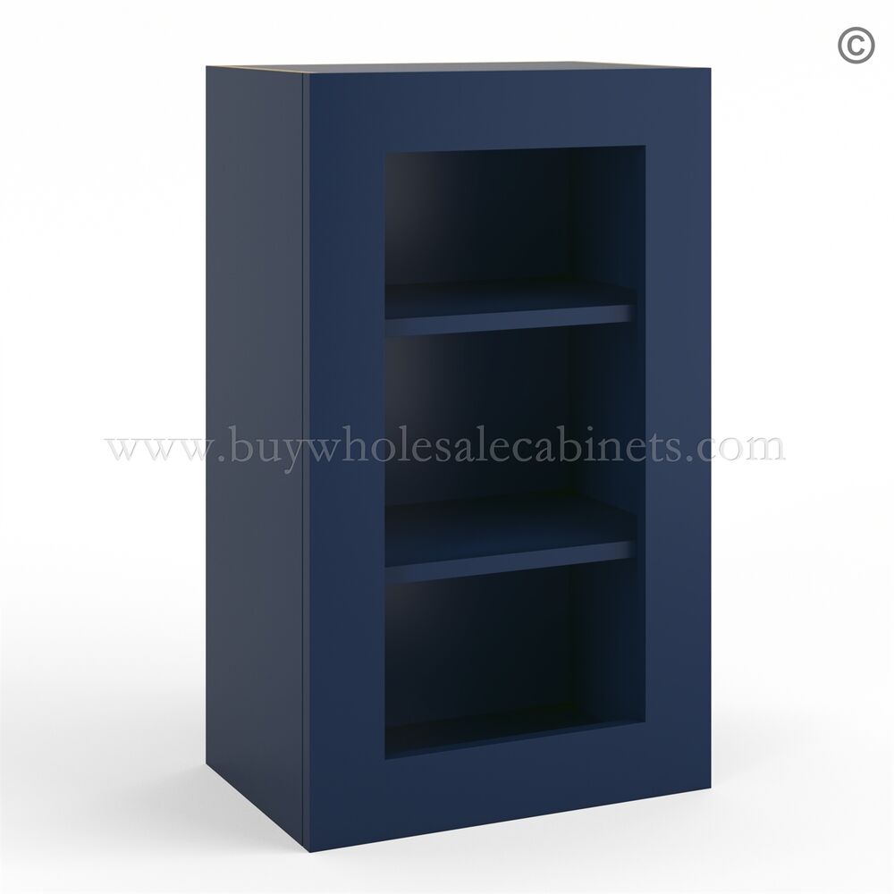 Frameless Oxford Blue 30″ Tall Deep Wall Cabinet – 1 Door 2 Shelves