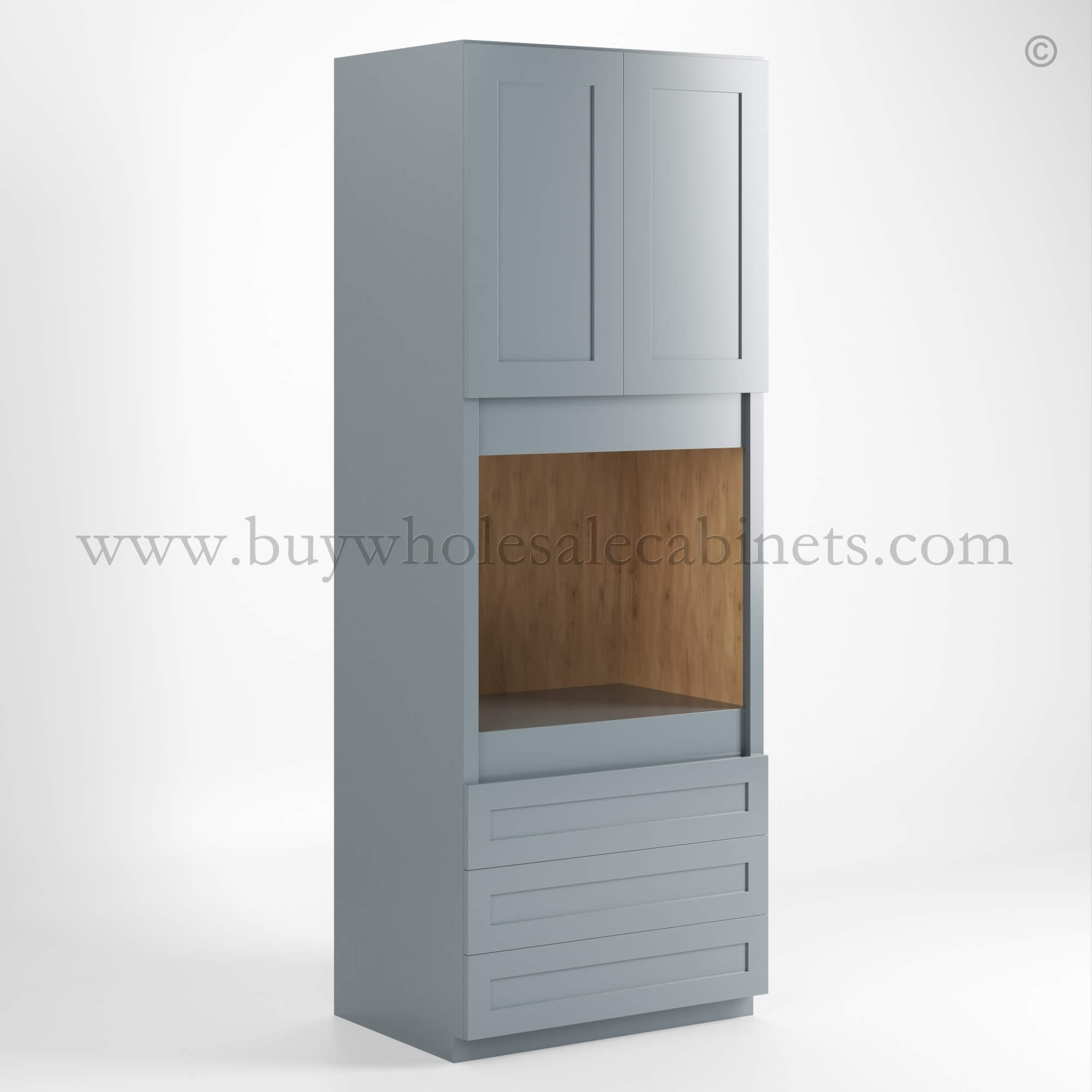 Gray Shaker 30″ W Double Door Oven Pantry Cabinet with Three Drawers