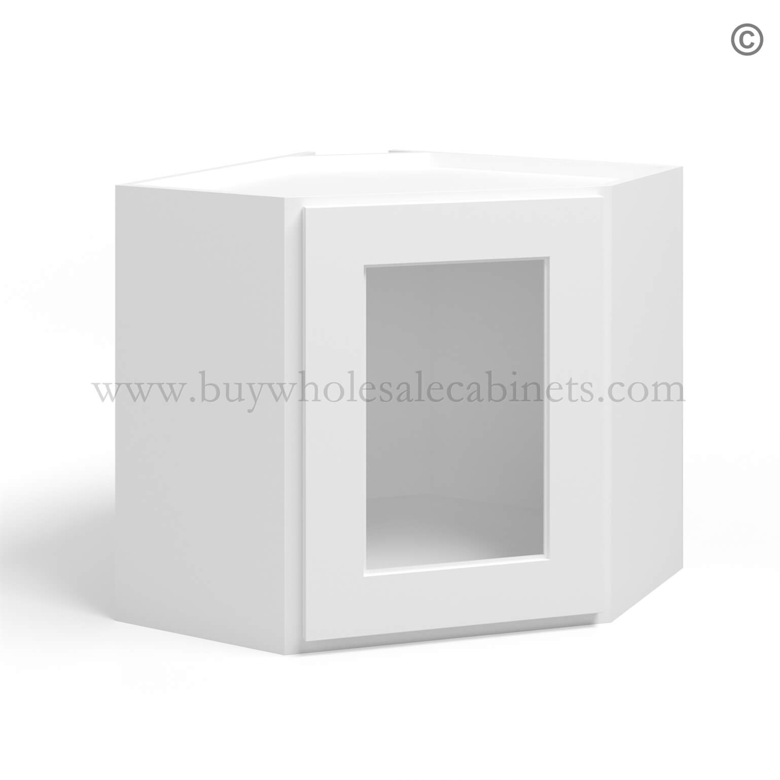White Shaker 12″ x 24″ Diagonal Corner Wall Cabinet with Glass Door